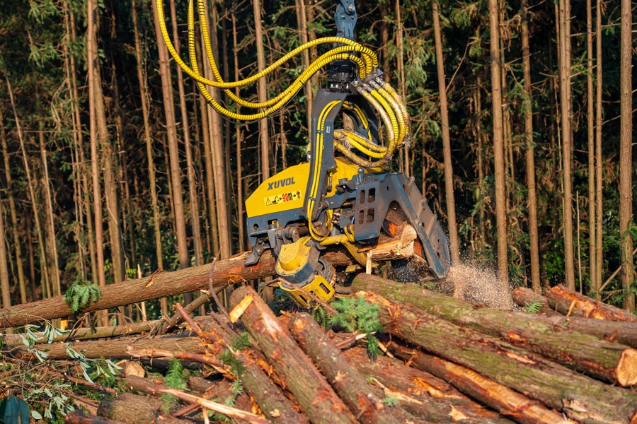 適用于各種森林的高效、靈活和可靠的伐木機頭,專為大樹而設計,需要大型基礎機器,是一個靈活且適應性強的伐木機頭,即使在最困難的森林中,它也是可靠和高效的。憑借強大的牽引力和有效的去枝功能,提高作業生產率。適合多徑采伐,最大砍伐直徑600mm,電腦板控制,砍伐長度自由設置,分段切割更為精確;自動進給、自動去枝、遇堵處理、流量自遁應、鏈鋸自動張緊操作更輕松高效;徐沃自主研發森林狼砍伐控制系統,操作更貼合砍伐實際需求以及用戶操作習慣,針對性設計,主機匹配性最優,砍伐效率高、油耗低,維修簡便,零部件價格經濟。