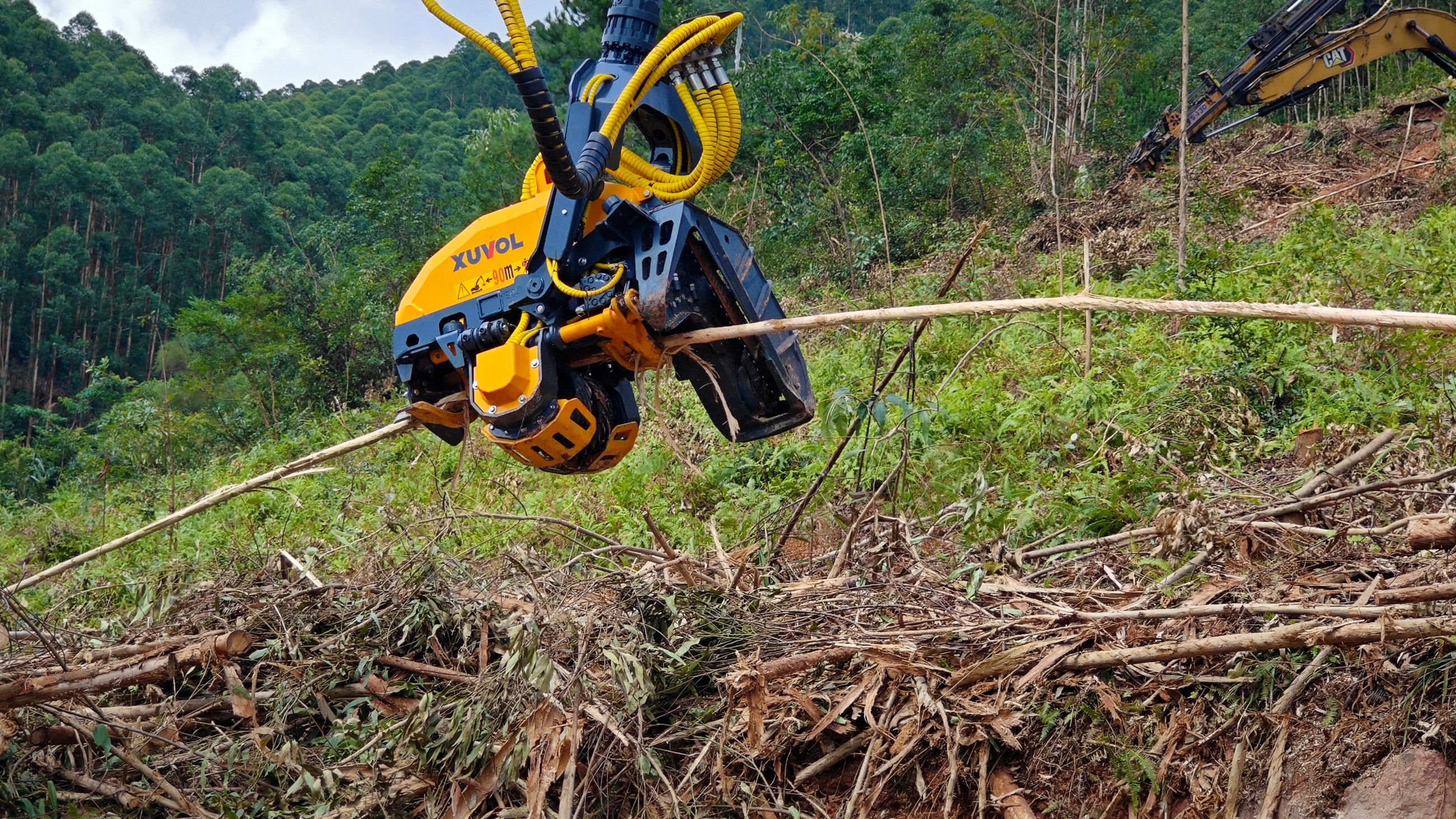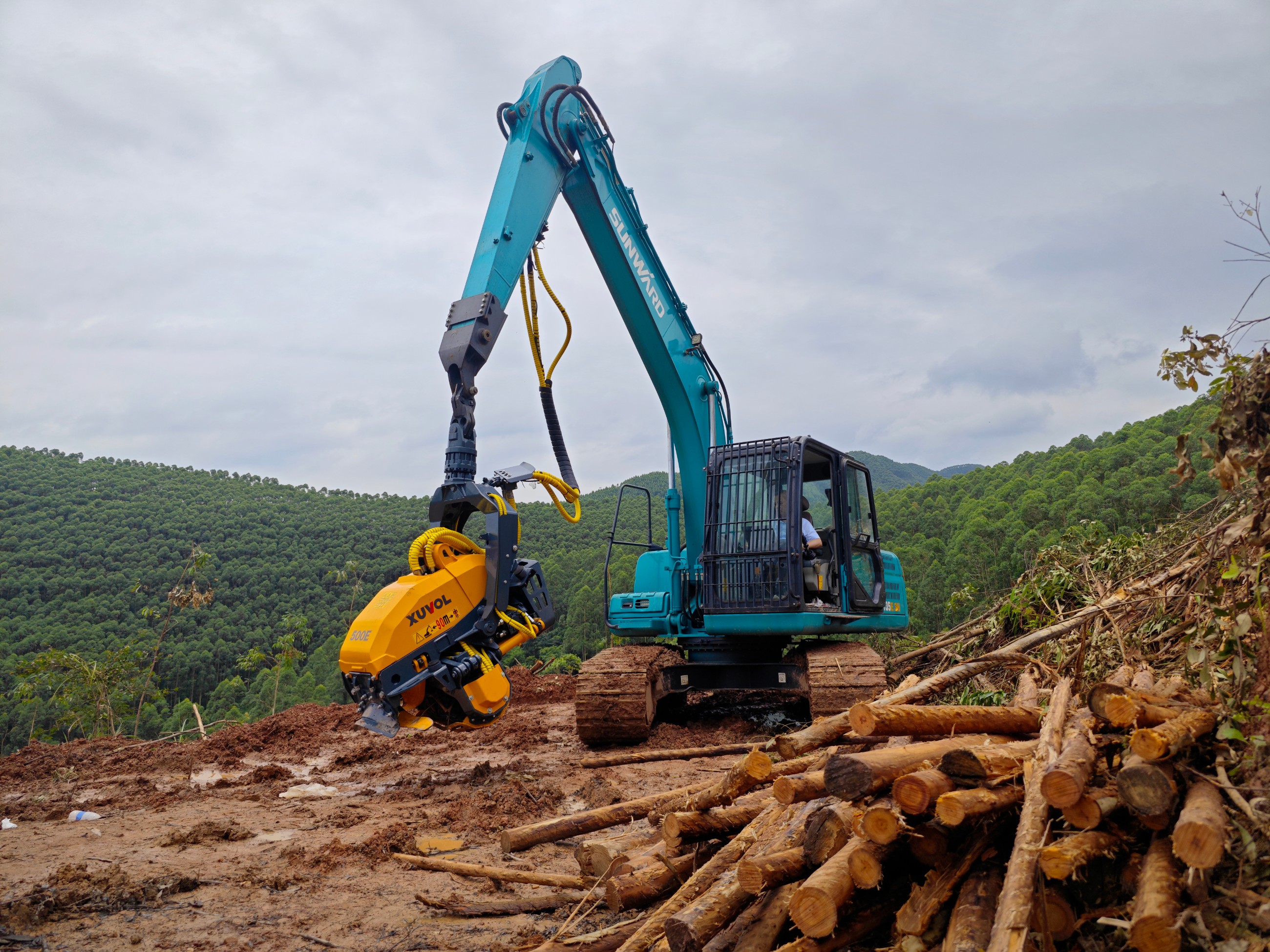 徐沃XVF-500E是一款具有剝樹皮功能的伐木機,專為有木頭剝皮的需求的木頭直徑小于500mm林業采伐需求設計的。特殊的剝皮喂料輪在斜角上可進行多切邊操作,從而產生一種螺旋式的樹干傳動并提供質量最好、速度最快的剝皮作業,在不進行剝皮作業時,可以更換常規喂料輪進行采伐作業。匹配13-15T挖掘機。