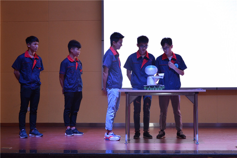 本次大賽是機(jī)電工程系主打的系品牌活動,此次共有10支參賽隊(duì)伍進(jìn)入決賽的比拼,各參賽隊(duì)伍通過計算機(jī)編程、工程設(shè)計、機(jī)械組裝,并結(jié)合自己的日常觀察積累,進(jìn)行了長達(dá)一個多月的積極創(chuàng)作。大賽在考核學(xué)生對于機(jī)器人創(chuàng)新創(chuàng)意應(yīng)用等基本技能基礎(chǔ)上重點(diǎn)突出社會所需專業(yè)技能及新技術(shù)應(yīng)用,體現(xiàn)創(chuàng)意創(chuàng)新成果和科學(xué)探究的綜合性相結(jié)合原則,突出職業(yè)能力素養(yǎng)考核及工匠精神要求。經(jīng)過激烈角逐,來自信息工程系、機(jī)電工程系組合成的“創(chuàng)躍團(tuán)隊(duì)”奪得桂冠,他們的作品“自平衡自行車”運(yùn)用UG建模、3D打印、摩擦輪技術(shù)成功創(chuàng)作出在無觸摸的情況下能通過手機(jī)控制自由活動的自行車。