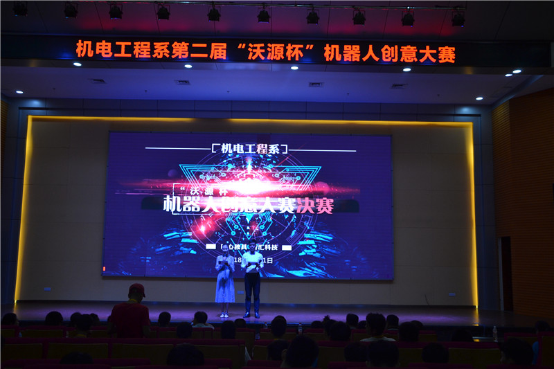 6月21日,機(jī)電工程系第二屆“沃源杯”機(jī)器人創(chuàng)意大賽在圖書館報告廳成功舉辦。學(xué)院何宏華副院長、學(xué)工處楊鴻鋒處長、機(jī)電工程系陳炳森主任、沃源公司丁錫志總工、工程機(jī)械協(xié)會黎余明秘書長、水利工程系黃飛華書記、機(jī)電工程系張海明書記、學(xué)院團(tuán)委石春麗副書記蒞臨決賽現(xiàn)場觀摩指導(dǎo)。